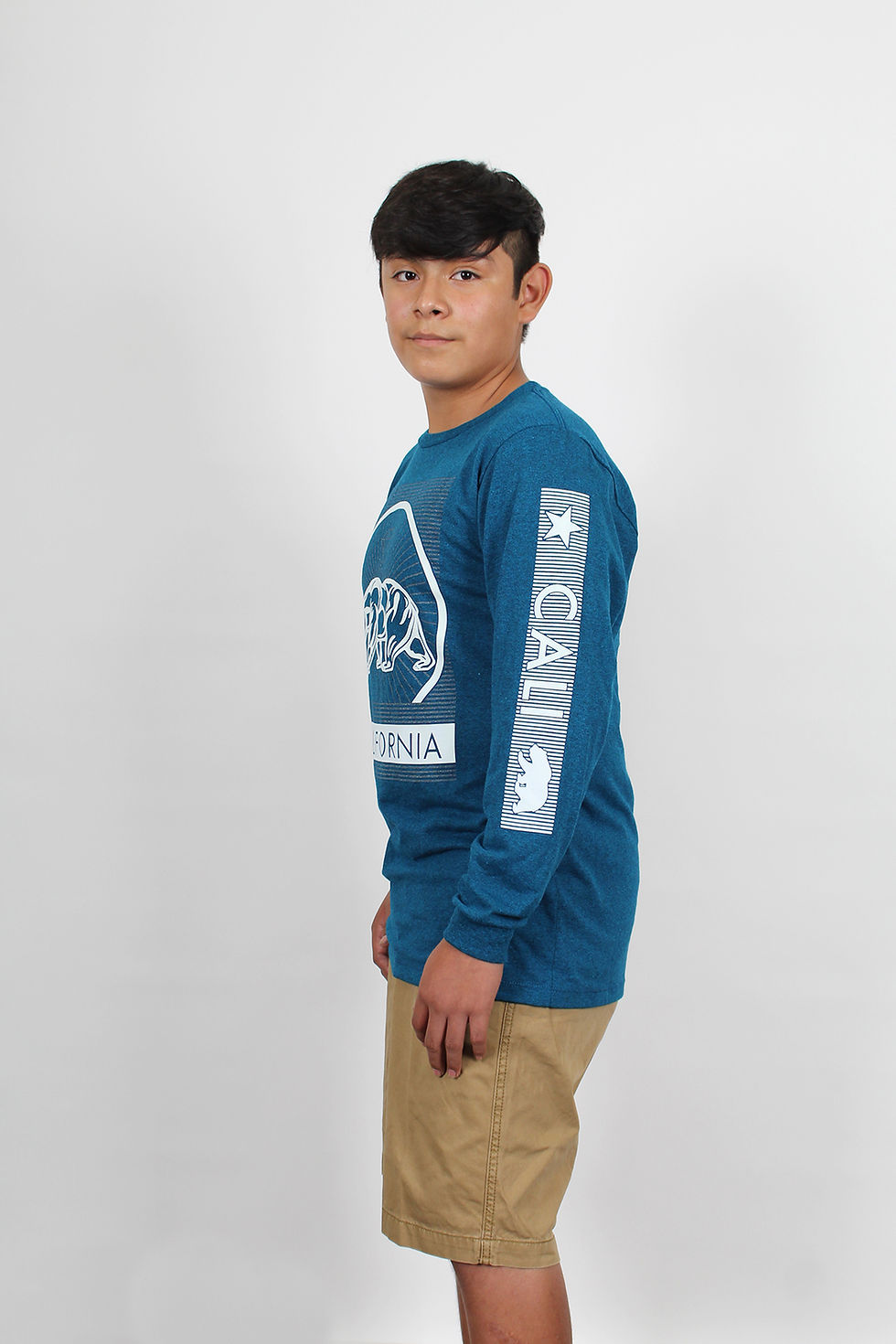 Blue Textured "HD Cali Bear" Long-Sleeve Shirt